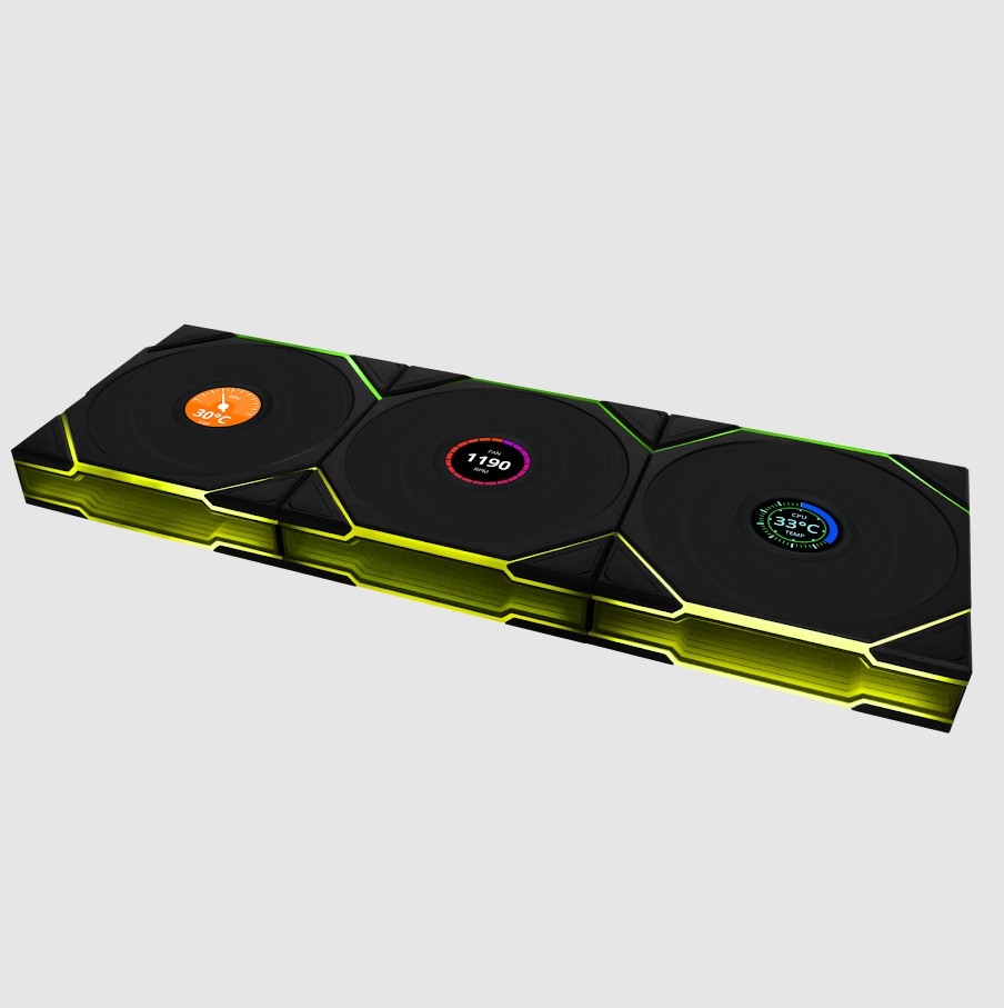 Lian-Li Fan HS2LCD36TB 2.1" LCD 3xUNI FAN Radiator...